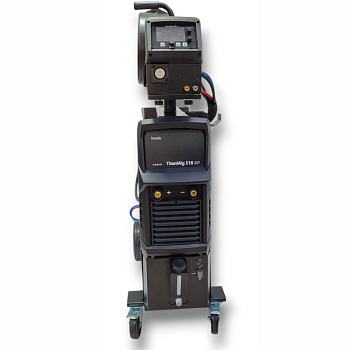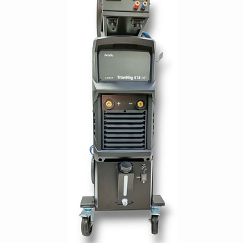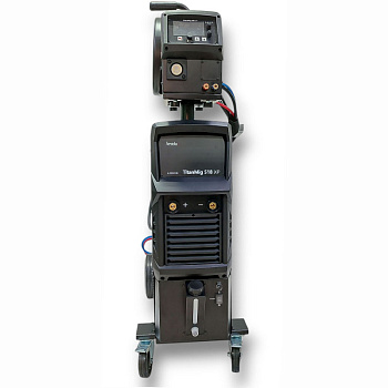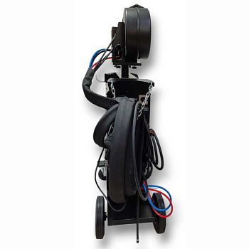 Небольшой вес источника при 31,4 кг и 4-х колесная интегрированная телега с платформой под баллоны, позволяет перемещать сварочный аппарат увеличивая зону сварочных работ.